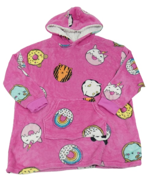 Tmavorůžová chlupatá oversize mikina s donuty a kapucí Primark