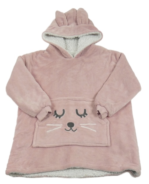 Světlerůžová plyšová zateplená oversize mikina s čumákem a kapucí