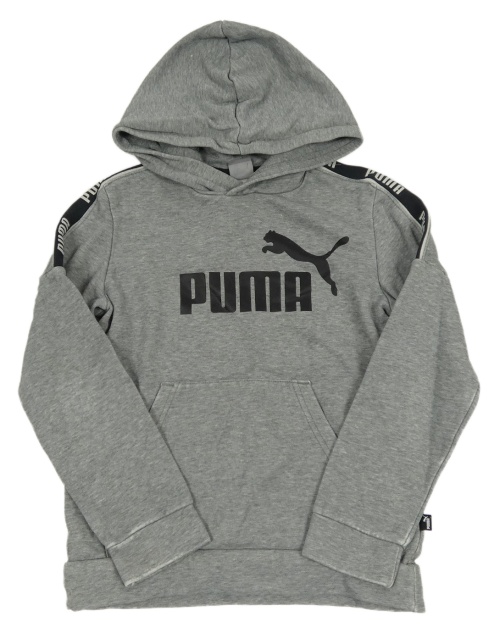 Šedá melírovaná mikina s logem a kapucí Puma