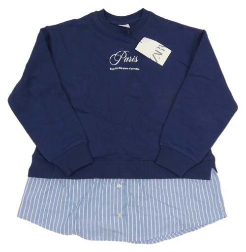 Nové - tmavomodrá oversize mikina s nápisy a všitou pruhovanou halenkou ZARA