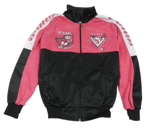 Růžovo-bílo-černá sportovní propínací mikina s potiskem