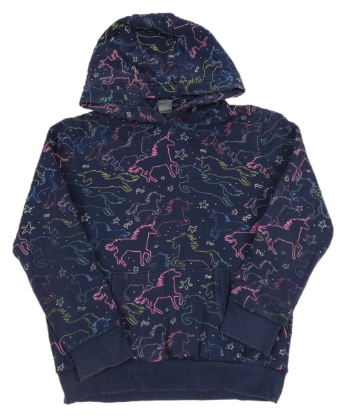 Tmavomodrá mikina s jednorožci a kapucí