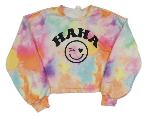 Barevná batikovaná crop mikina se smajlíkem a nápisem Shein