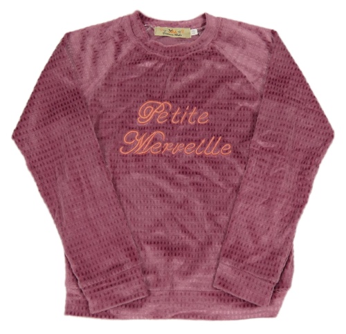 Starorůžová plyšová vzorovaná mikina s nápisem