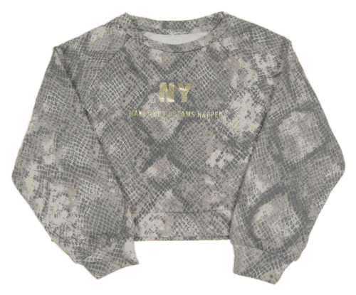 Šedá vzorovaná crop mikina s nápisem