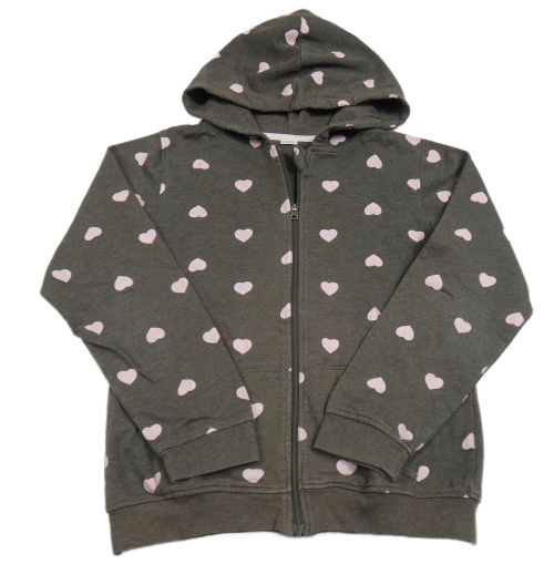 Šedá propínací mikina se srdíčky a kapucí