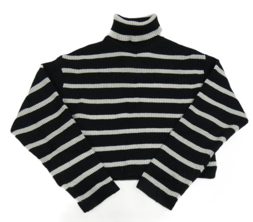 Černo-světlešedý pruhovaný žebrovaný crop svetr s rolákem Zara