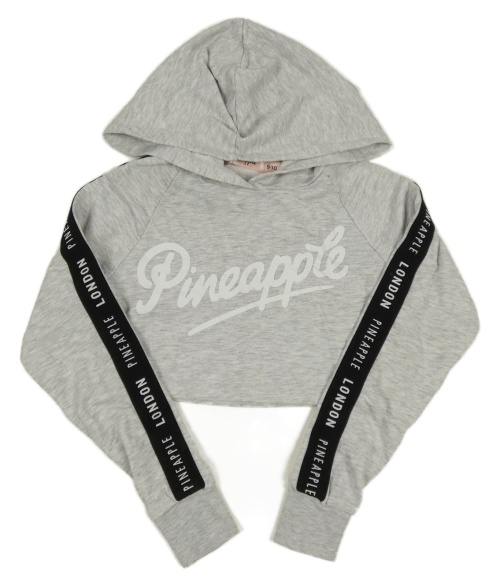Šedá melírovaná crop mikina s logem a kapucí Pineapple