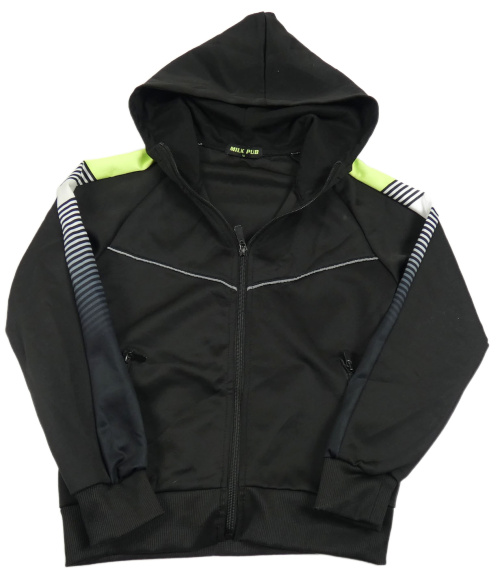 Černá propínací sportovní mikina s proužky a kapucíá
