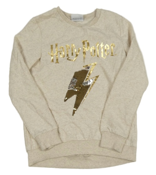 Béžová mikina s nápisem Harry Potter a bleskem z flitrů