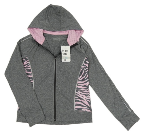 Nové - šedo-tmavošedo-růžová melírovaná propínací mikina se vzorem a kapucí PRIMARK