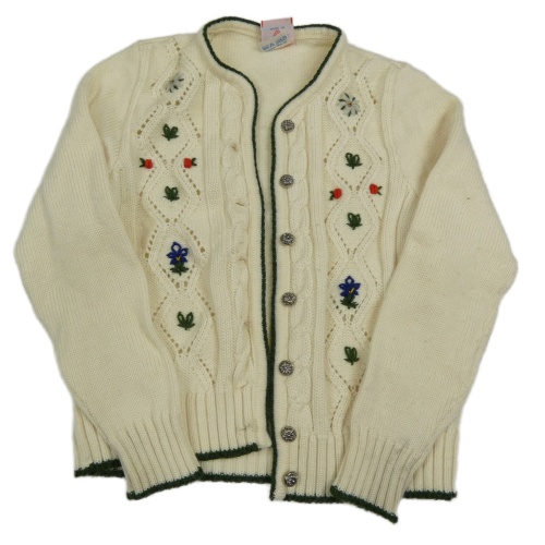 Smetanový vzorovaný vlněný propínací svetr s květy
