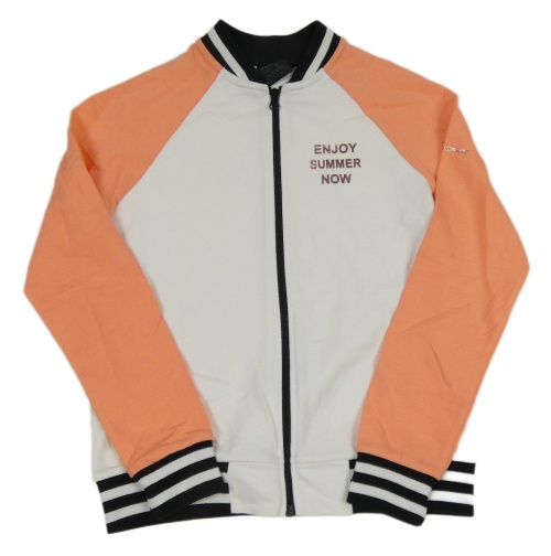 Bílo-korálová propínací mikina s nápisem