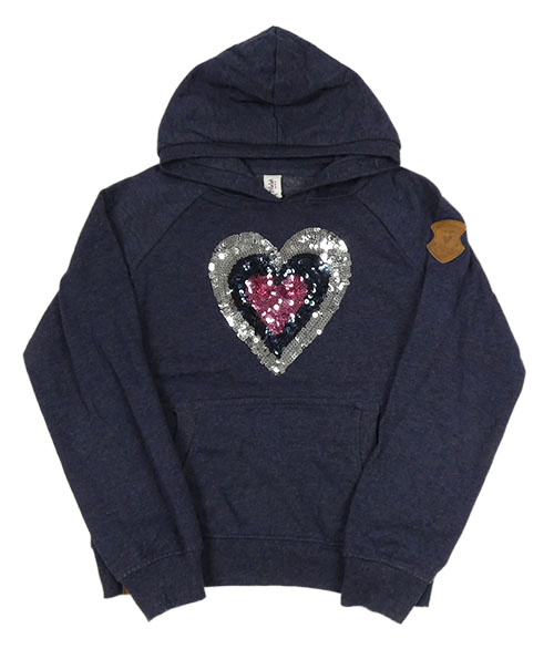 Tmavomodrá melírovaná mikina se srdíčkem z flitrů a kapsou a kapucí YIGGA