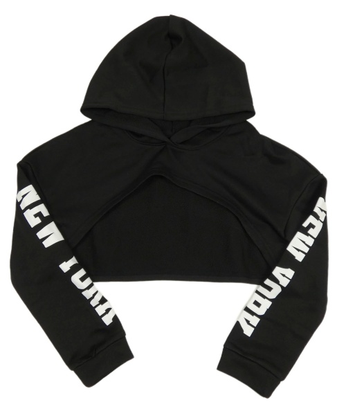Černá crop mikina s nápisy a kapucí
