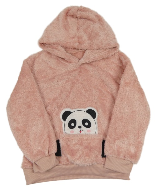 Světlerůžová chlupatá mikina s pandou a kapucí
