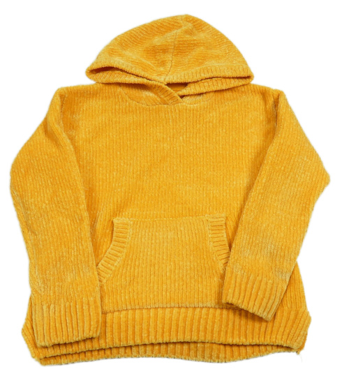 Pomerančový melírovaný žinylkový svetr s kapsou a kapucí C&A