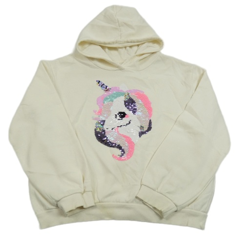 Smetanová crop mikina s jednorožcem z flitrů a kapucí H&M