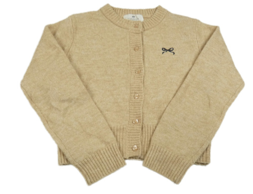 Béžový melírovaný vlněný propínací crop svetr s mašličkou H&M
