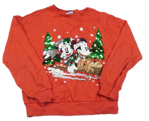 Červená mikina s Mickey a Minnie a překlápěcími flitry s vánočním motivem George