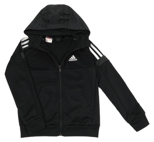 Černá sportovní propínací funkční mikina s pruhy a kapucí Adidas