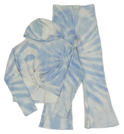 • 2set - Světlemodro-bílá batikovaná žebrovaná úpletová crop mikina s kapucí + flare legíny George