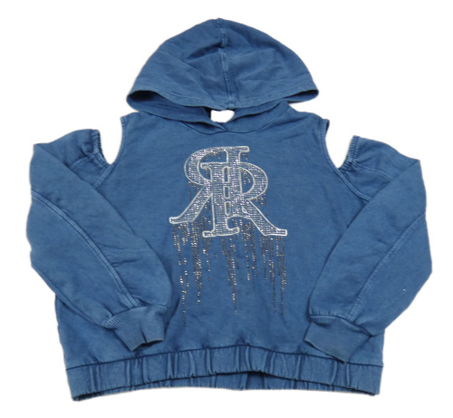 Tmavomodrá crop mikina s logem a holými rameny a kapucí River Island