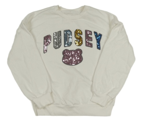 Bílá mikina s Pudseym a nápisem z flitrů George