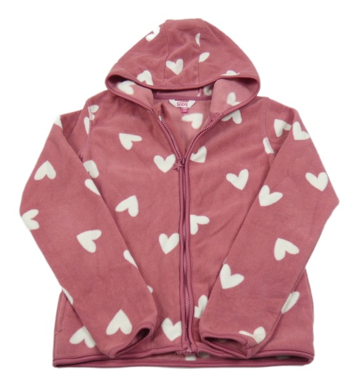 Růžová fleecová propínací mikina se srdíčky a kapucí Kids