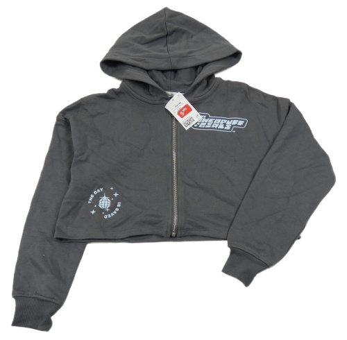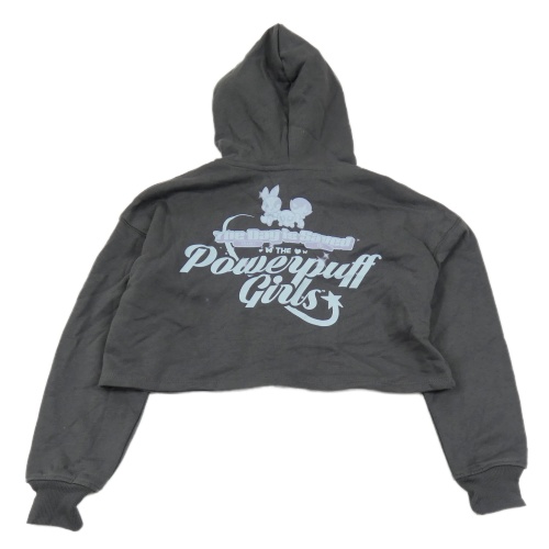 Nové - Tmavošedá propínací crop mikina s nápisem a kapucí - Powercuff Girls H&M