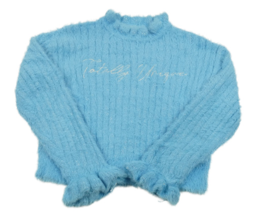 Světlemodrý chlupatý třpytivý žebrovaný crop svetr s nápisem River Island