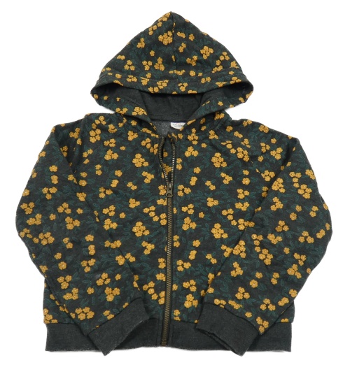 Tmavošedo-zeleno-žlutá květovaná propínací crop mikina s kapucí