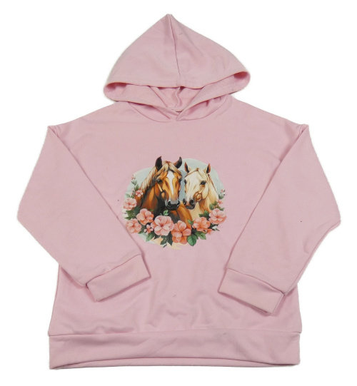 Světlerůžová mikina s koníky a kapucí