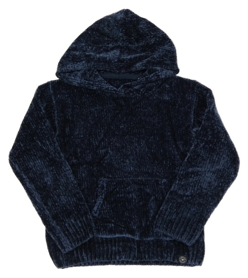 Tmavomodrý melírovaný žinylkový svetr s kapsou a kapucí C&A