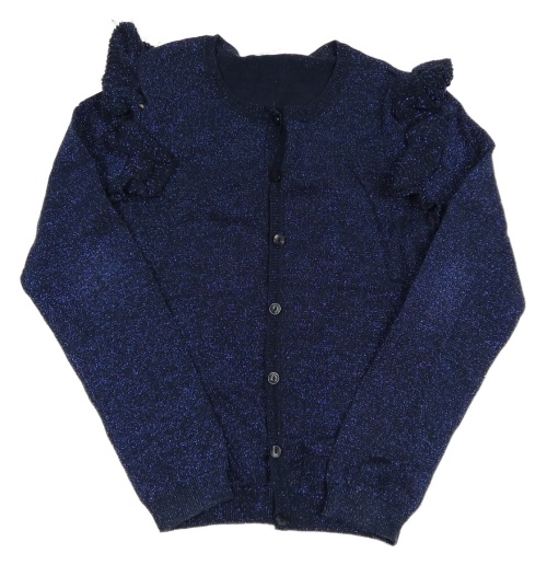 Tmavomodrý třpytivý propínací svetr s volánky Hema