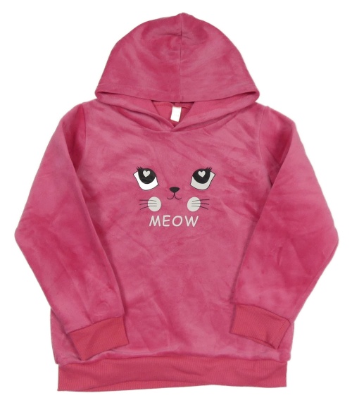 Růžová plyšová mikina s kočkou a kapucí