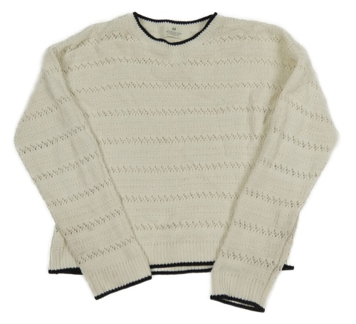 Bílý perforovaný svetr s tmavomodrým lemem H&M