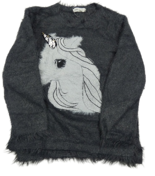 Tmavošedý chlupatý svetr s jednorožcem H&M