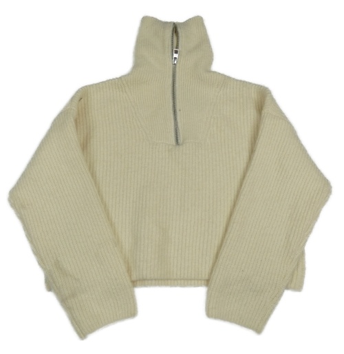 Smetanový žebrovaný vlněný oversize crop svetr ZARA
