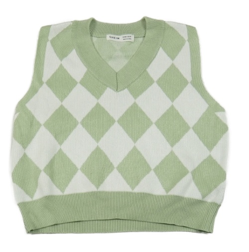 Zeleno-bílá károvaná pletená crop vesta Shein