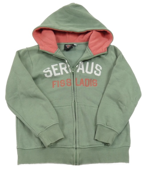 Khaki propínací mikina s nápisy a kapucí