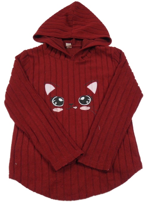 Vínová žebrovaná úpletová tunika s kočičkou a kapucí