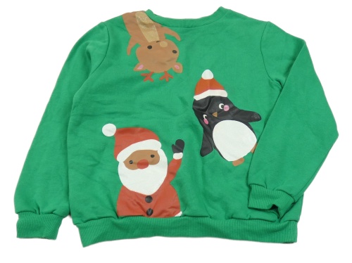 Zelená vánoční mikina se Santou a tučňáčkem a sobem H&M