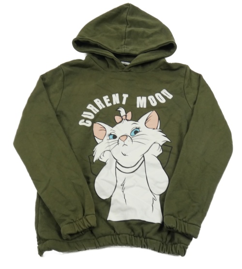 Tmavozelená mikina s kočičkou Marií a kapucí