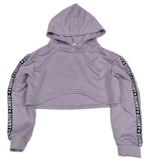 Levandulová crop mikina s pruhy s nápisy a sluníčky a kapucí SHEIN