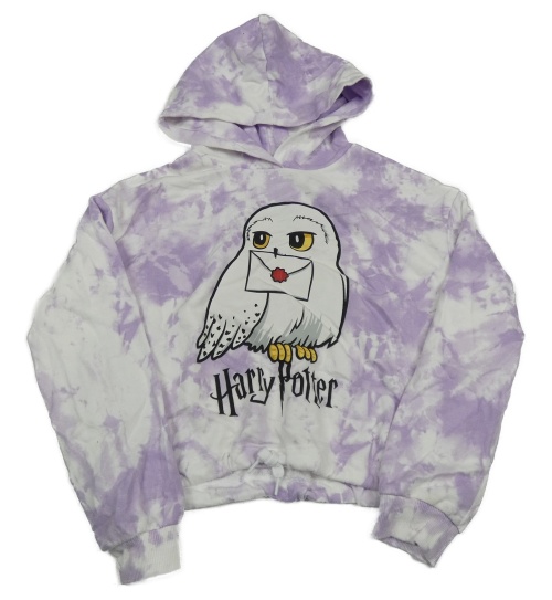 Lila-bílá batikovaná crop mikina s Hedvikou a kapucí C&A