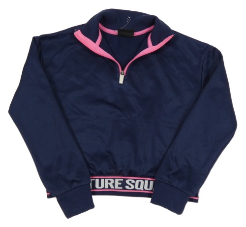 Tmavomodrá sportovní crop mikina s nápisem Ergeenomixx