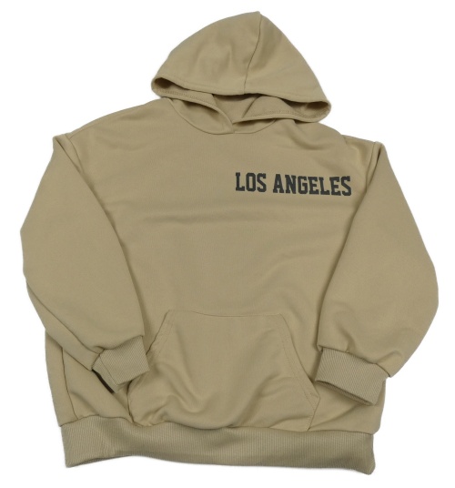 Béžová oversize mikina s nápisem a kapsou a hvězdou a kapucí Shein