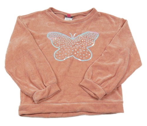 Broskvová sametová mikina s motýlkem z flitrů