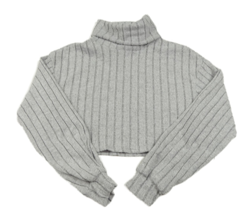 Šedý žebrovaný crop svetr s rolákem Shein